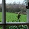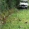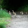 Young pheasants are called poults - being rounded up beneath a bedroom window.