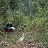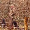 Camouflage is one form of defense - a hen on a pile of logs ...