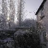 Tall poplar trees were planted in front of the cottage to make pheasants fly high in the sky.