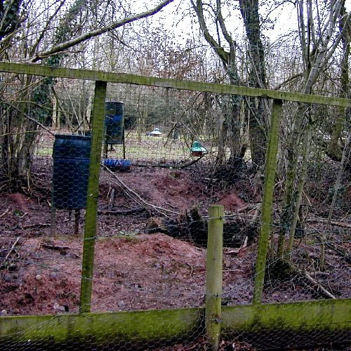 The ugly and sinister pen constructed at the bottom of my garden, which is filled with hundreds of pheasants every year.